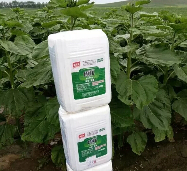2017年,两人共同种植了500亩葵花,据张春介绍,在葵花幼苗期和现蕾期使用甲K多抗菌素配合漯效王有机水溶肥各喷施一次;在8-10叶期,使用优旺微生物菌剂进行冲施;现蕾期,再次使用优旺微生物菌剂进行冲施。