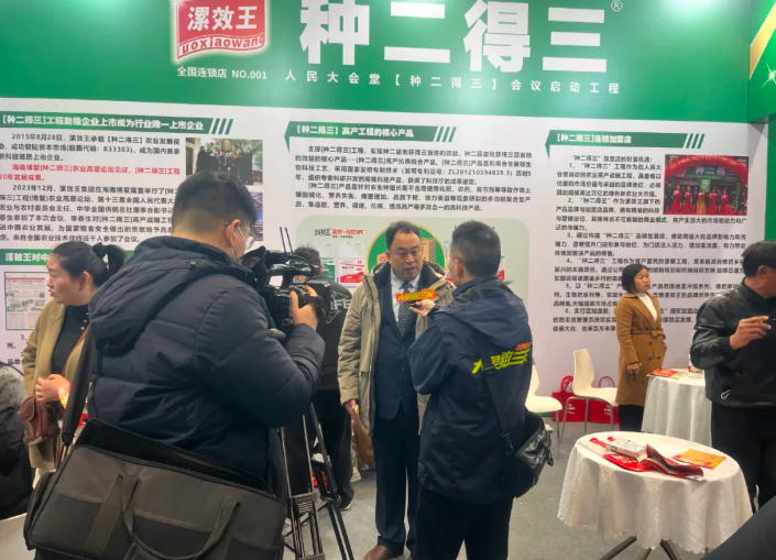 展会现场,漯效王集团携以【种二得三】套装产品为主的核心套装产品精彩亮相。【种二得三】系列产品融合多项发明专利,创新性地将功能性追肥、营养供给、抗病防护等多重功效集于一身,凭借其卓越的科技含量与显著的实用价值,在众多参展产品中脱颖而出,吸引了各家媒体纷纷采访。漯效王展位前人潮如织,热闹非凡,成为展会当之无愧的人气焦点,充分彰显了其在农资领域的强劲竞争力。